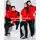 Red jacket. Black pants.