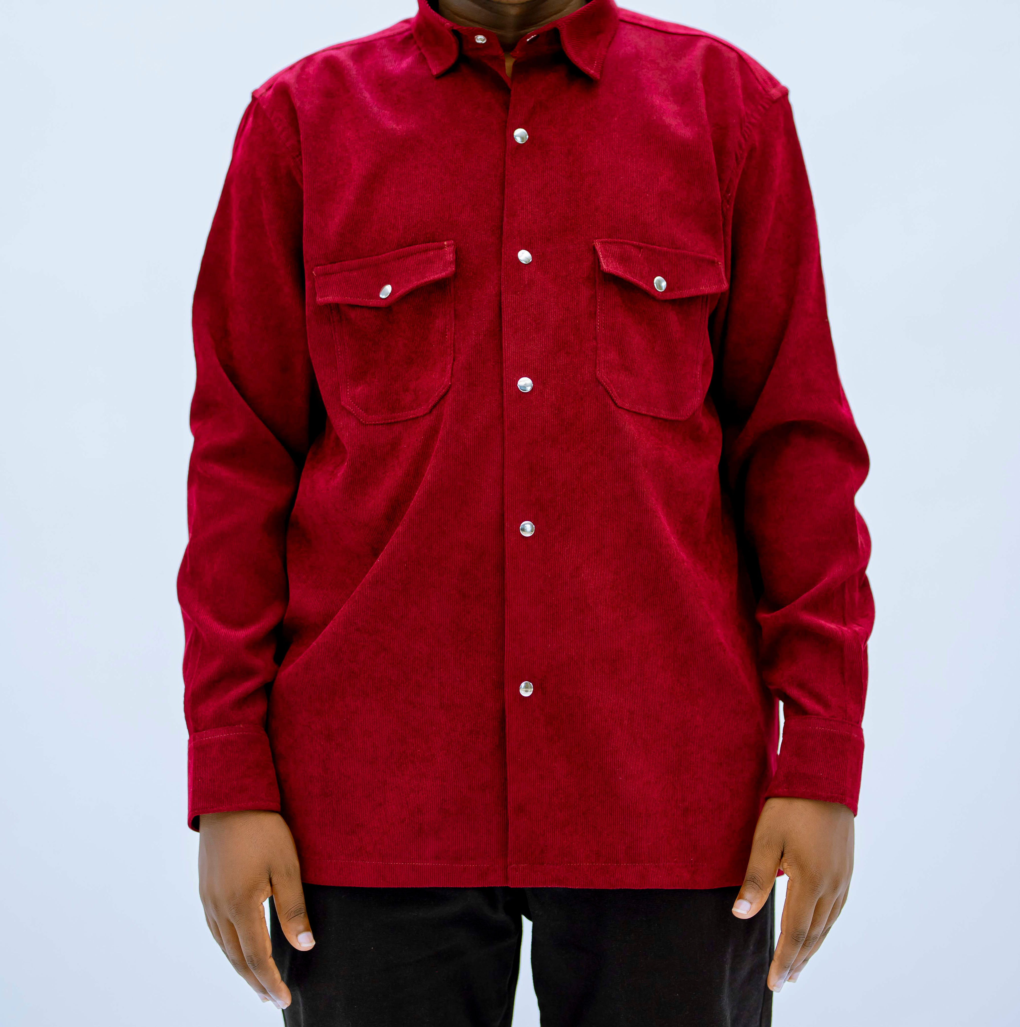 BYOSE IWACU Men's Stylish Red Pearl Snap Button Shirt – Soft, Fashionable & Made in Rwanda