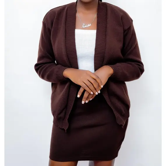 The Elegant Complete is a stylish and coordinated outfit set designed to elevate your look with ease and confidence. This three-piece ensemble includes a chic cardigan, a flattering skirt, and a matching bra top—all crafted with comfort and elegance in mind. Ideal for both formal and casual occasions, it brings together modern fashion and graceful simplicity. Available in sizes S, M, and L.