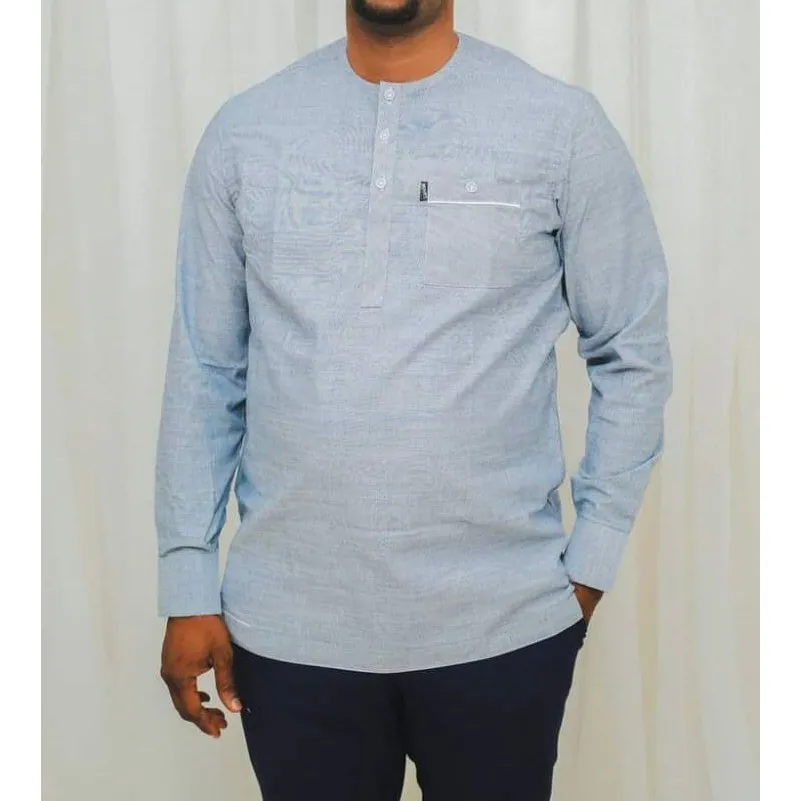 Elevate your everyday style with this light blue long-sleeve collar shirt. Featuring a clean, buttoned placket and a sleek chest pocket with subtle trim detail, it blends comfort with a modern, understated elegance perfect for work or leisure.
