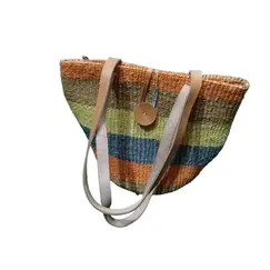 Colorful and eco-conscious straw tote with leather handles—great for beach days, markets, or daily outings.