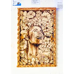 Joyful Woman Radiant Handcrafted Wooden Artwork. This exquisite piece captures the essence of joy and resilience, intricately carved into premium wood.