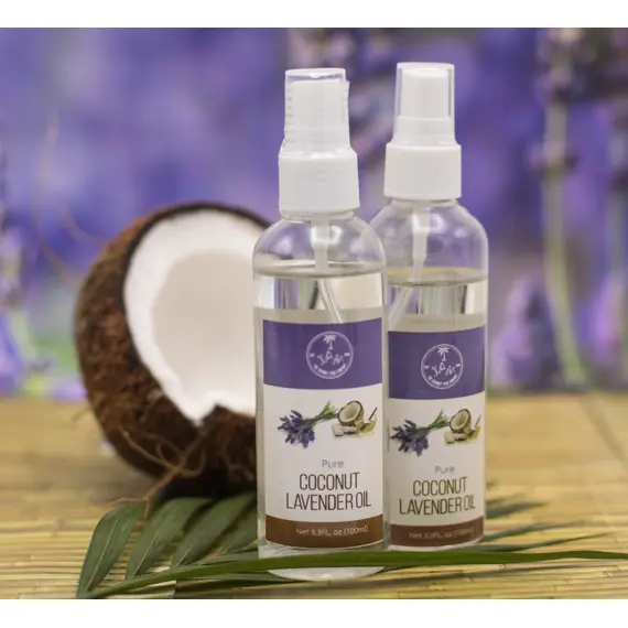 day. Each bottle comes with a spray cap making it easy to dispense. Our coconut  lavender oil is ideal for hair care, skin care and massages.