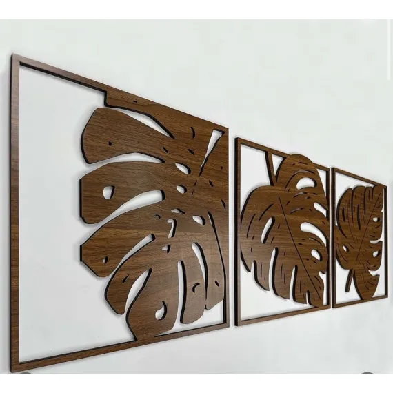 This unique set of three wall art panels features intricate Monstera leaf designs, bringing a touch of nature and a vibrant tropical vibe indoors. Crafted from high-quality, durable wood with a rich, dark walnut finish, each piece highlights the natural beauty and unique texture of the material. These openwork decorative panels are easy to install and create a modern, elegant aesthetic in any living room, bedroom, or office space