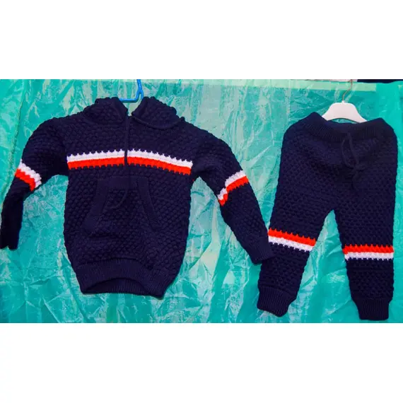• Stay cozy and stylish with this 2-piece blue tracksuit set, featuring a drop-shoulder hoodie and matching joggers, perfect for casual wear and lounging.