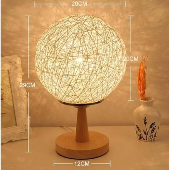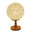 - This small brown table lamp features a stylish wooden globe lampshade, blending mid-century modern design with natural materials for a warm, inviting ambiance.
