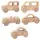 Wooden Toys are one set is five different cars with width 7 cm and 3.2 cm thick and 3.5 cm height with wood color smooth and good finishingÂ