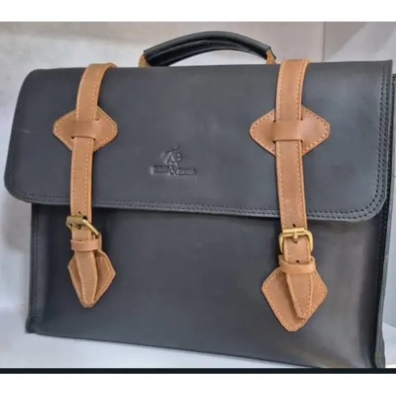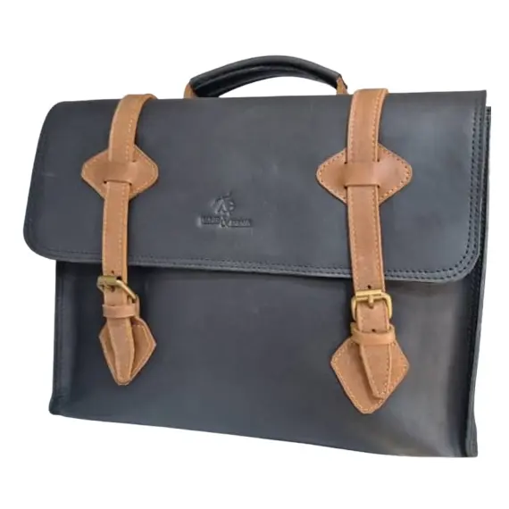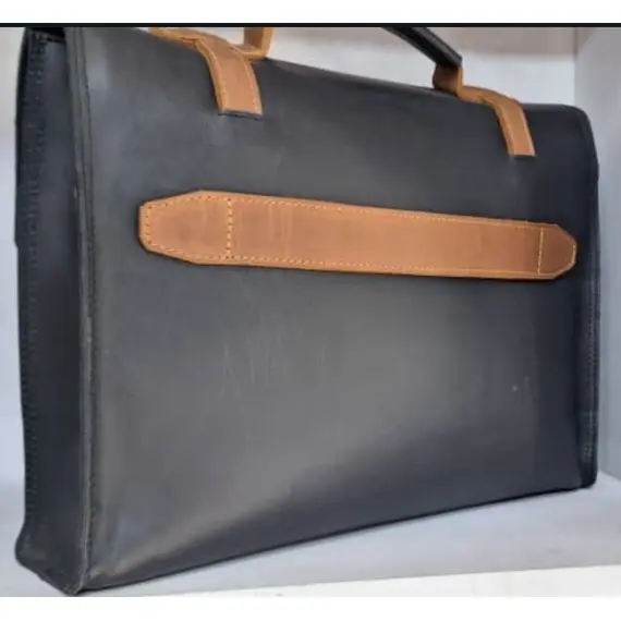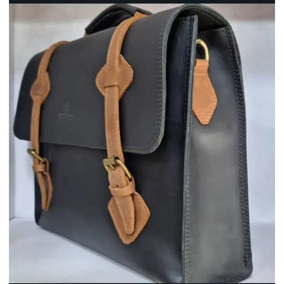 Premium Craftsmanship: Expertly handcrafted from 100% genuine leather with brass hardware, offering exceptional durability and a polished look.Spacious & Organized: Features a roomy main compartment, side pockets, and a multifunction interior to neatly organize your laptop, documents, and essentials.Laptop Protection: Includes a thick padded laptop compartment, ensuring your devices are secure and protected during commutes or travel.Sophisticated Design: Black leather with a stylish brown stripe creates a professional aesthetic suitable for office, business meetings, and travel.Versatile Usage: Perfect as a laptop briefcase, work bag, or travel companion, combining practicality with elegance for professionals on the go.