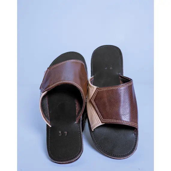 Handcrafted Brown Leather Unisex Slip-On Sandals – Classic One-Band Comfort Flats