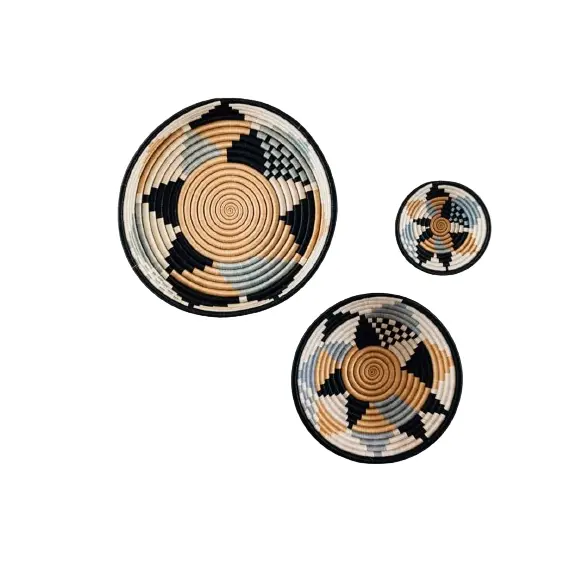 Handwoven Artisan Craftsmanship – Made from natural materials with intricate weaving techniques, ensuring high-quality and durability.Versatile Home Décor – Can be used as wall art, table centerpieces, or accent décor for a modern boho aesthetic.Set of Three Sizes – Includes 30cm, 25cm, and 18cm woven baskets for a layered, stylish display.Rustic & Natural Elegance – Adds warmth and texture to any room, complementing bohemian, minimalist, and rustic home styles.Eco-Friendly & Sustainable – Crafted using locally sourced materials, supporting ethical craftsmanship and sustainable home décor.