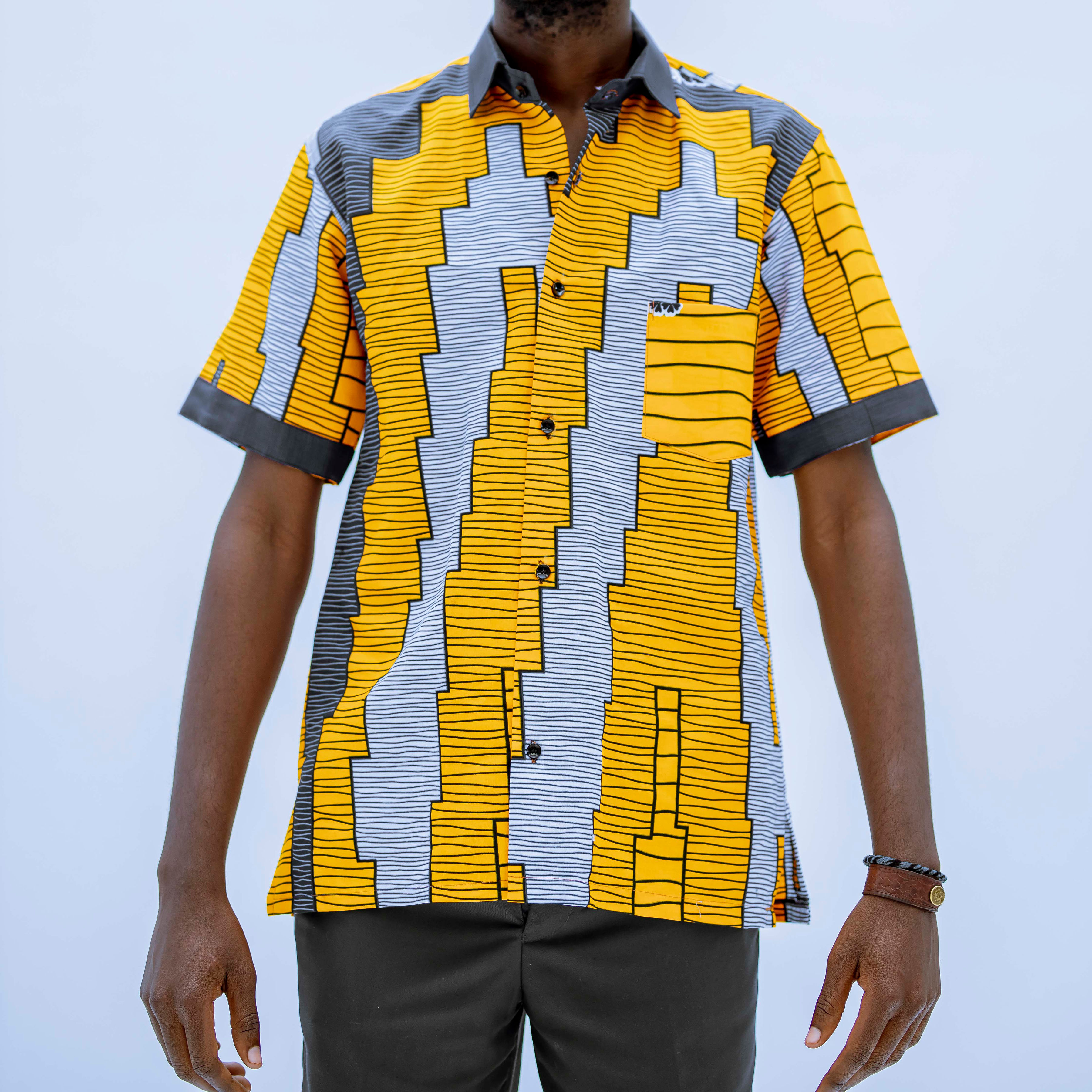 BYOSE IWACU Essentials Men’s Vibrant Print Short-Sleeve Shirt – Stylish & Comfortable Made in Rwanda