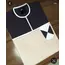 This is a neatly folded short-sleeve men's shirt with a modern, color-block design. The upper section is dark navy or black, while the lower part is a soft beige. It features white trimming along the collar and chest seam, giving it a clean and structured look. A standout feature is the front pocket, which is beige with a bold black and white geometric pattern that adds a unique and stylish flair to the overall design.